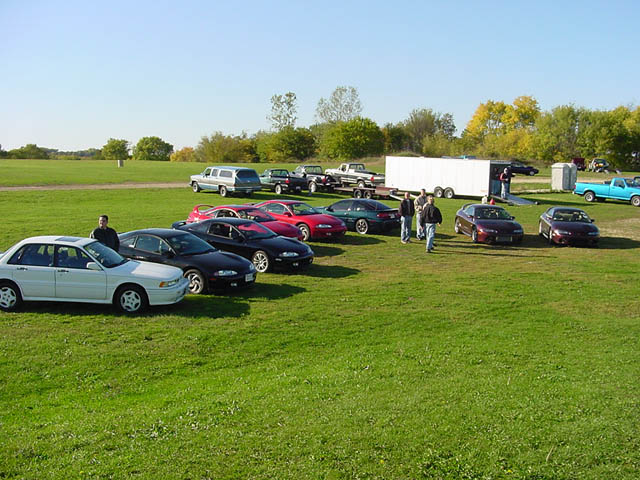 01 - Unpacking for Twin Solo day 2 02 - Tony in front of his Saturn 03 - Matt's Civic EX 04 - Scott's Focus ZX3 05 - My GSX 06 - Steve's Dakota RT 07 - A pair of blue Impreza WRXs 08 - Another ex-DSM member with a Supra |