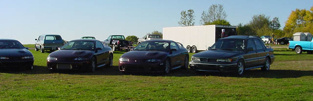 11 - 2G Eclipses and a Galant 12 - Same cars from behind 13 - Few more cars in a better line 14 - My GSX next to Yusuf's Talon 15 - More member's cars lined up 16 - Member's cars lined up 17 - Member's cars lined up 18 - Waiting for the tow truck to show 19 - My GSX |