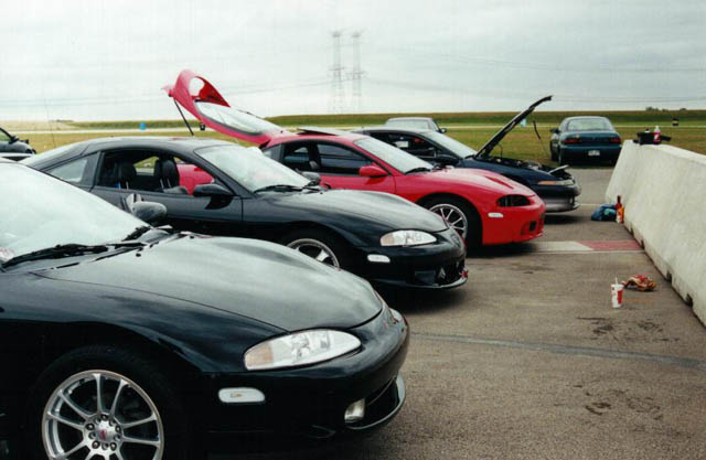 01 - Chicago caravan on I-294 02 - Behind two 1G's in Indiana 03 - Getting off I-80 in Ohio 04 - AMS vehicles at the Amerihost 05 - AMS 1G Talon 06 - Beautiful silver 2G GSX 07 - Greenstreak's 2G Talon 08 - Eclipse4x4's sweet 2G Eclipse 09 - Yusuf's 1G Talon AWD 10 - Jesse from Slowboy Racing's 96 GSX 11 - Victor's silver GSX 12 - Changing a trans in the parking lot 13 - Check in at Saturday's Summit event 14 - Mirage/Evo conversion 15 - AMS's real RHD Evo II 16 - Brent Rau's tube-frame Eclipse 17 - Close-up of one wicked 4G63 18 - DSM's ready to run down the strip 19 - An actual JDM-spec Lancer Evo VII 20 - Yusuf on the track 21 - AMS EVO2 having clutch problems 22 - Sean Glazer's RWD tube-frame Mirage |